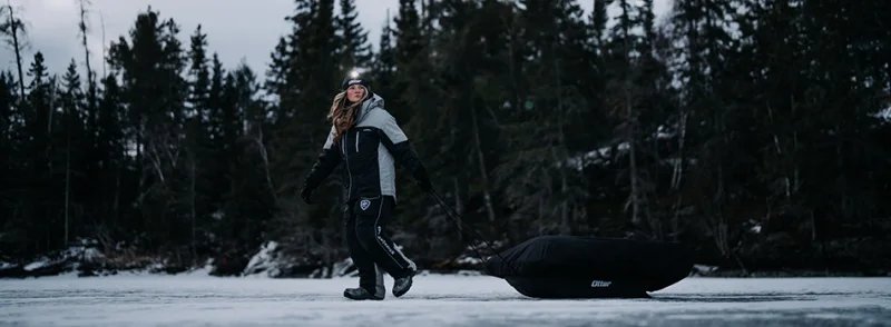 The Otter Pro Sleds feature a Roto-Molded construction for the ultimate in strength and durability. With seamless surfaces and uniform thickness across the board Otter has produced one of the most durable sleds ever built. The processes used to manufacturer their ice sled have to meet strict tolerances and must distribute more material to help absorb the shock and stress where the sled gets it the most. The Otter Pro Sled has a raised back to help increase the cargo security to prevent items from falling out during travel behind a snowmobile or ATV. The outer lip has been reinforced for strength and support to hold ties and rope better and creating extreme sidewall stability.
