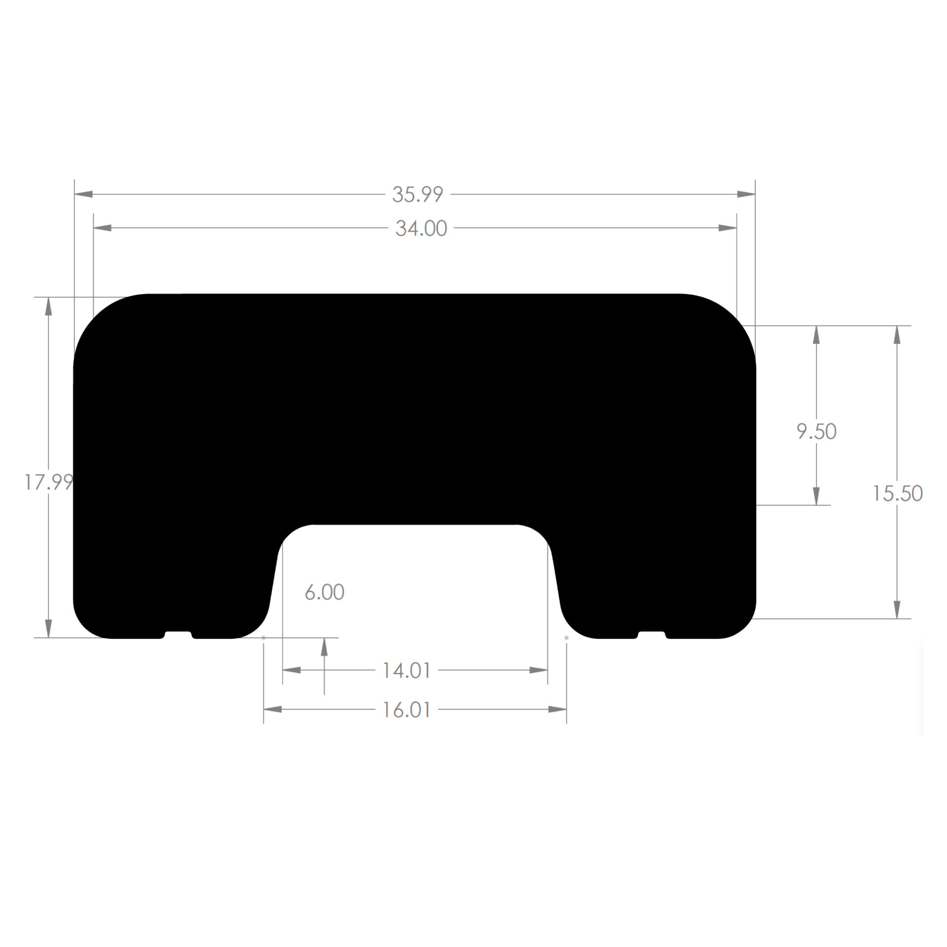 • Dimensions: 18″ L x 36″ W x 9″ D