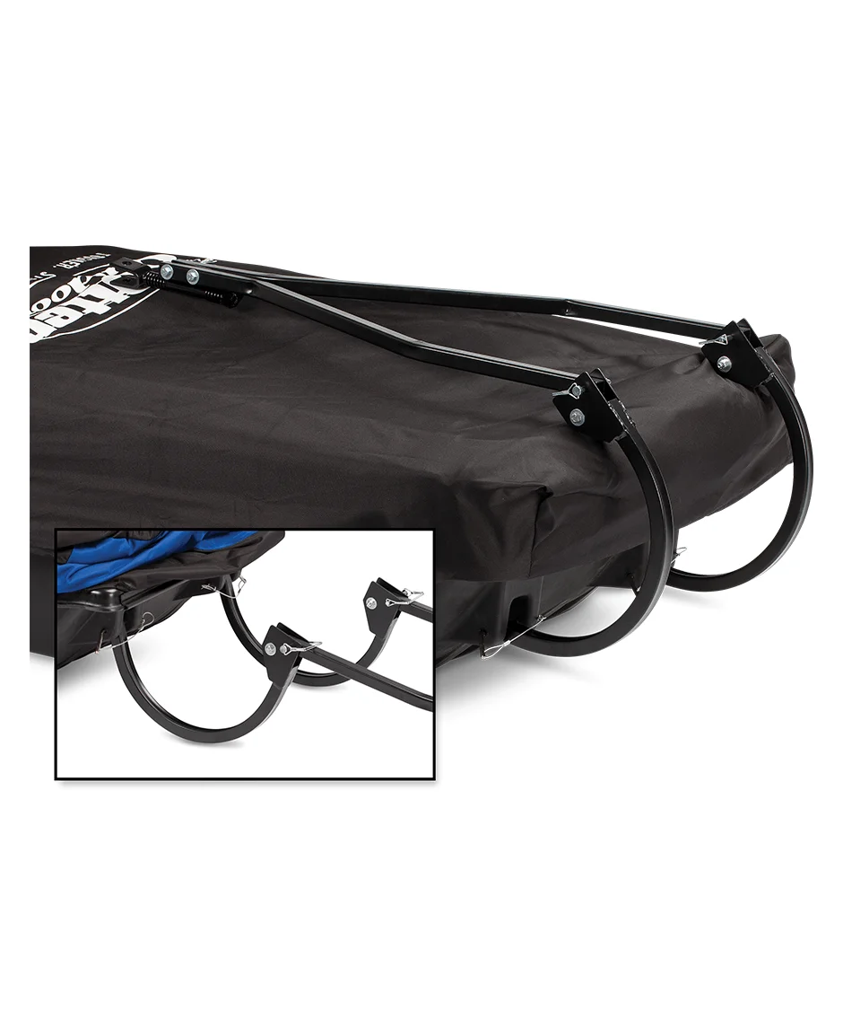 - Quickly fold your hitch over the top of your sled during transport