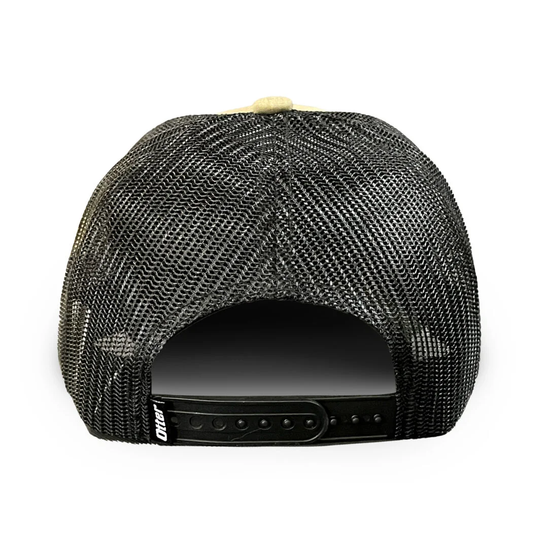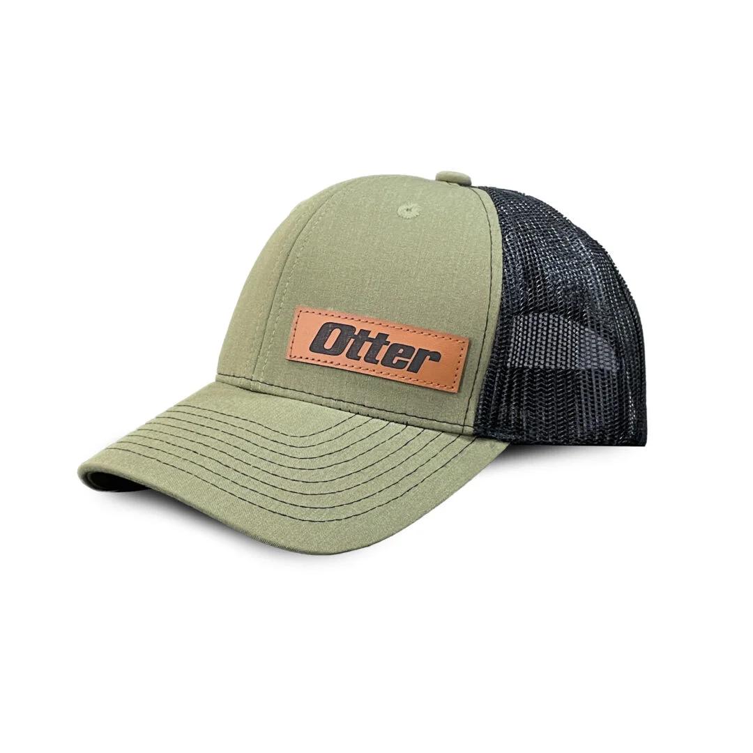 This structured trucker cap is made of brushed cotton twill with polyester mesh panels for aeration and breathability. Medium-profile and pre-curved visor. Leather stamped Otter logo patch on front left. Adjustable snap-closure back.