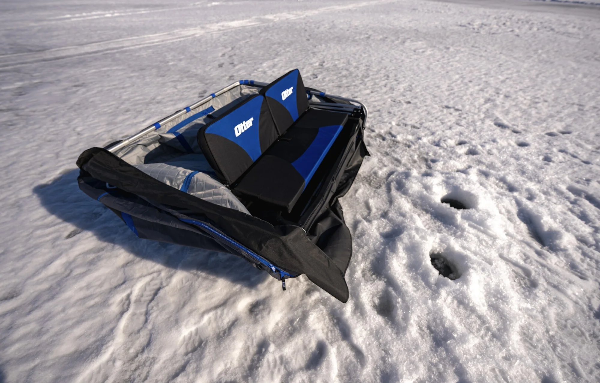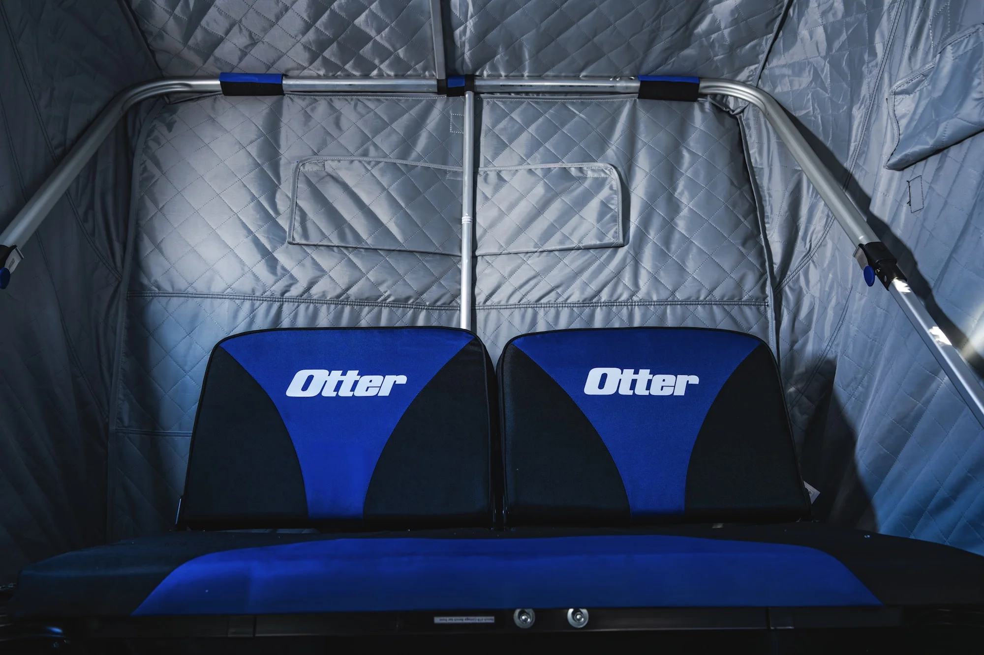 Otter XTR X-over shelters feature an industry first reclining bench seat that provides added versatility to already best-in-class comfort. Each side of the split bench can recline independently, creating more space for a workstation and quicker access to your gear. Better yet, recline both sides to form a flat bench for midday lull naps or overnight ice camping excursions.