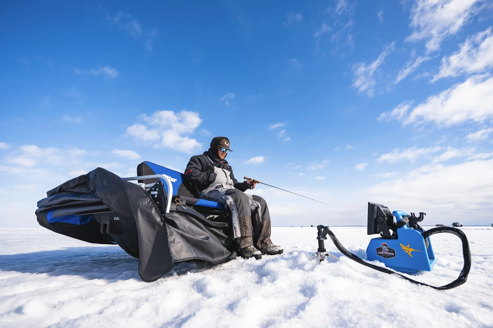 - 16.8 sq ft shelter is equipped with a 38” wide reclining split bench seat, providing enough room for up to 2 anglers