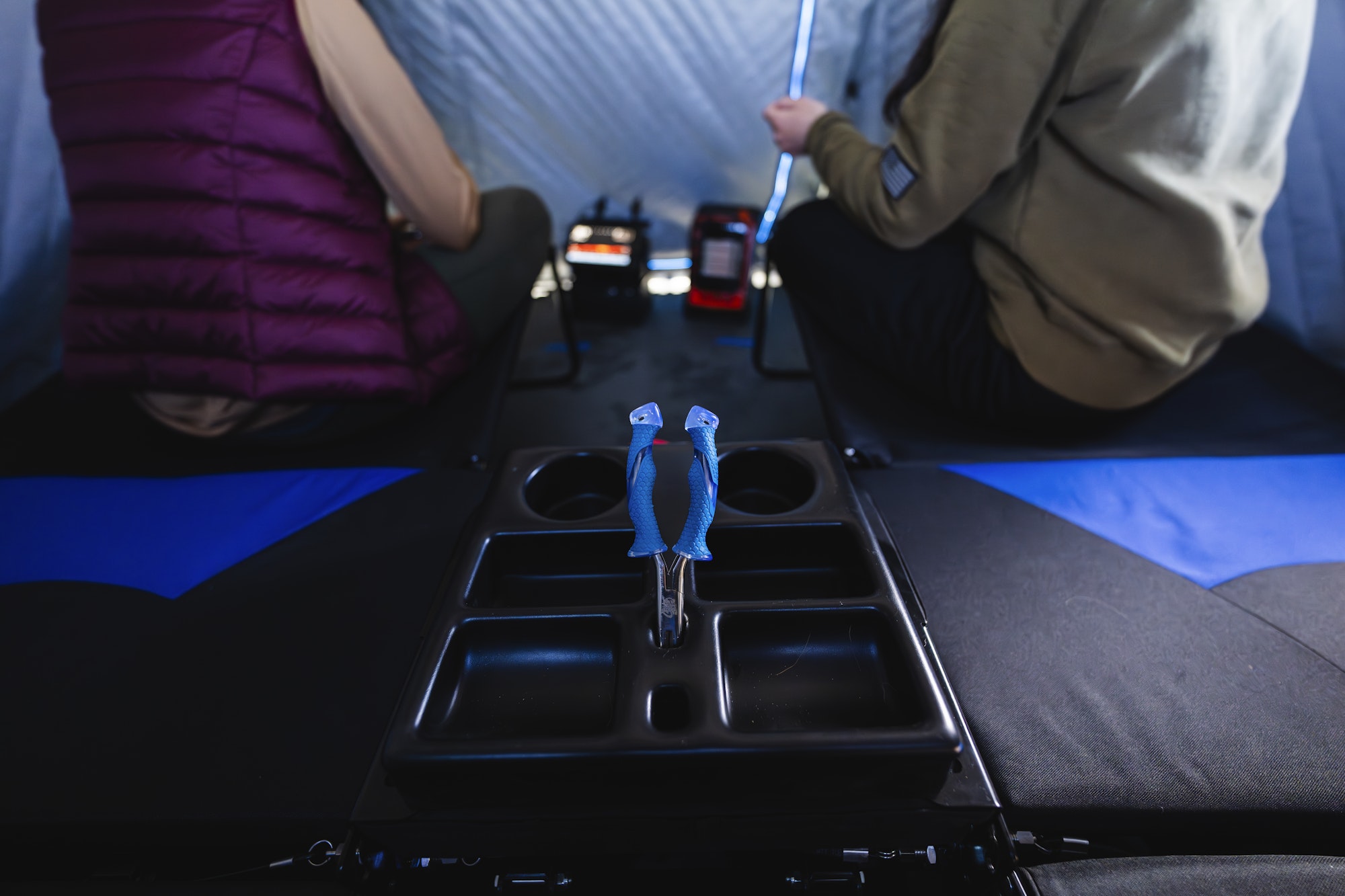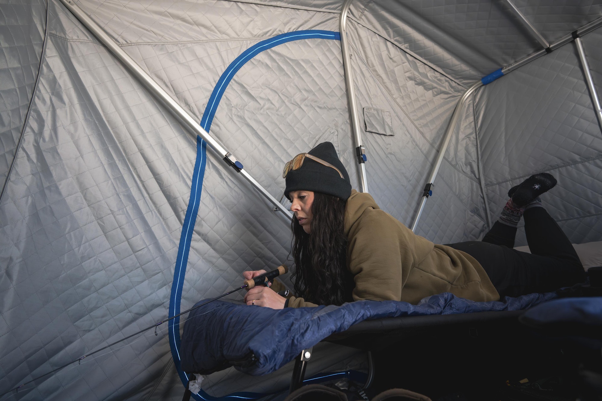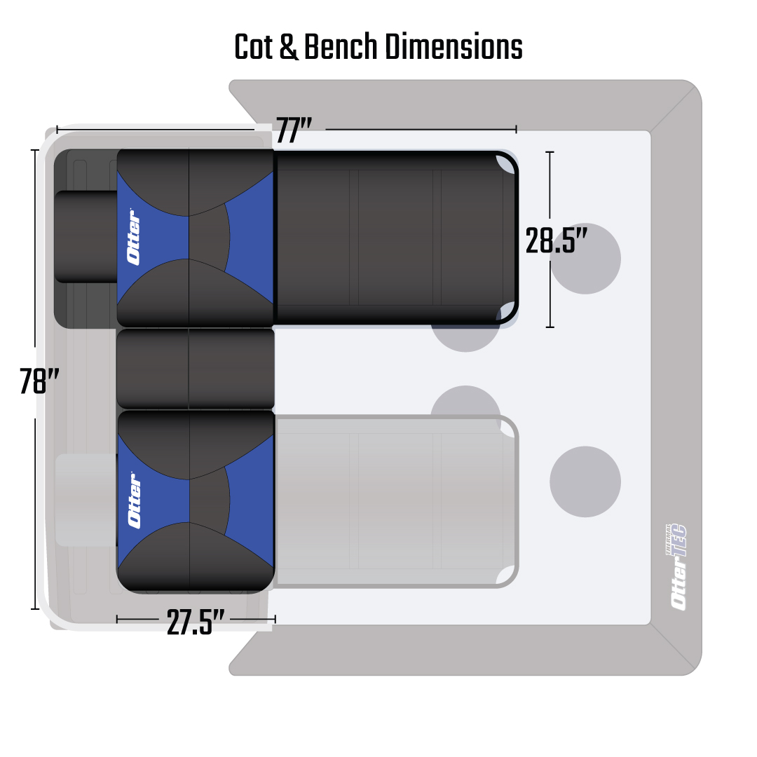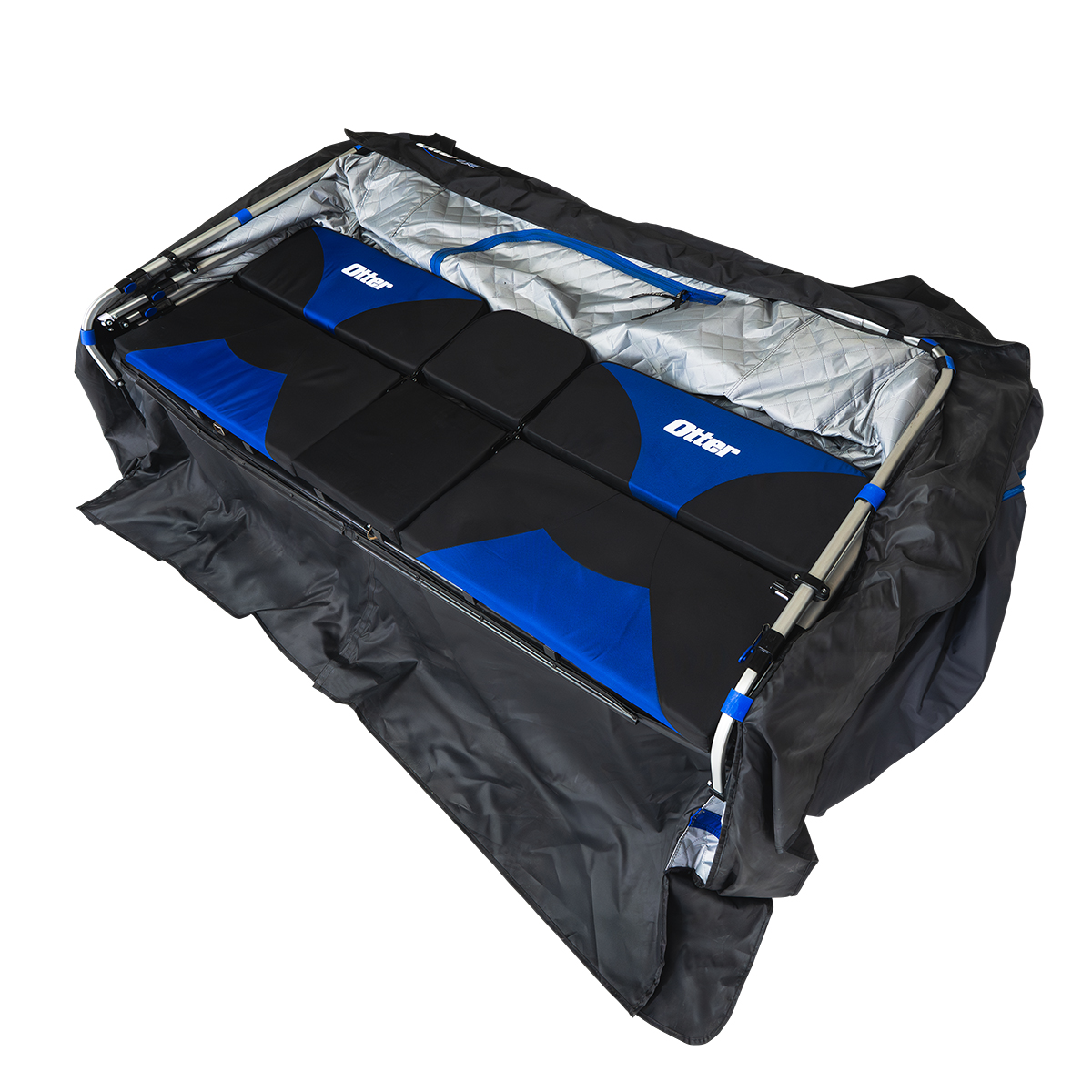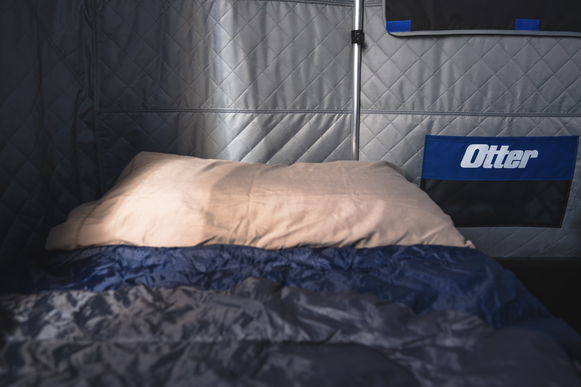 Otter XTR X-over shelters feature an industry first reclining bench seat that provides added versatility to already best-in-class comfort. The XTR Resort Sleeper X-Over gives ice anglers the option to transform the best mobile fishing shelter system into an ice camping setup in seconds. Fold the 3-piece bench flat for a single sleeper position or quickly & easily attach the headrest and cot sections to create a 2-man sleeper.