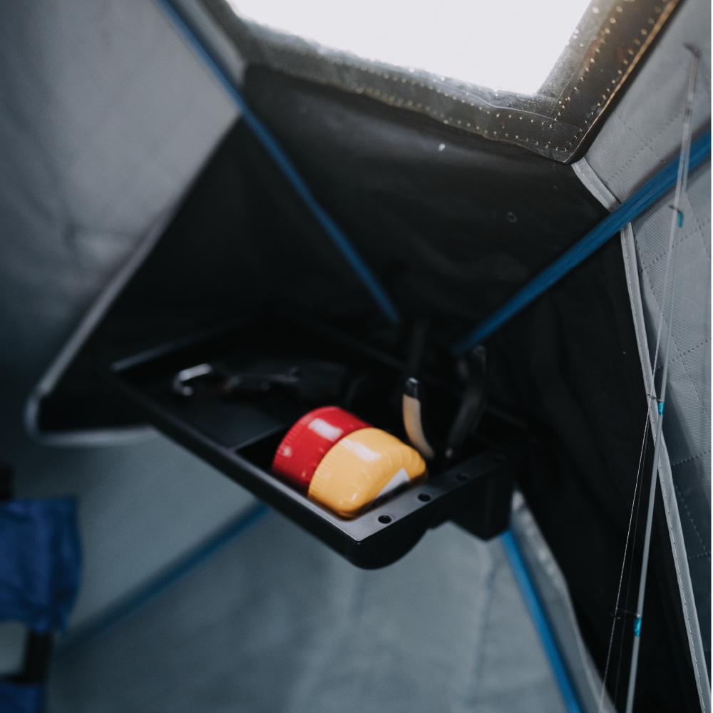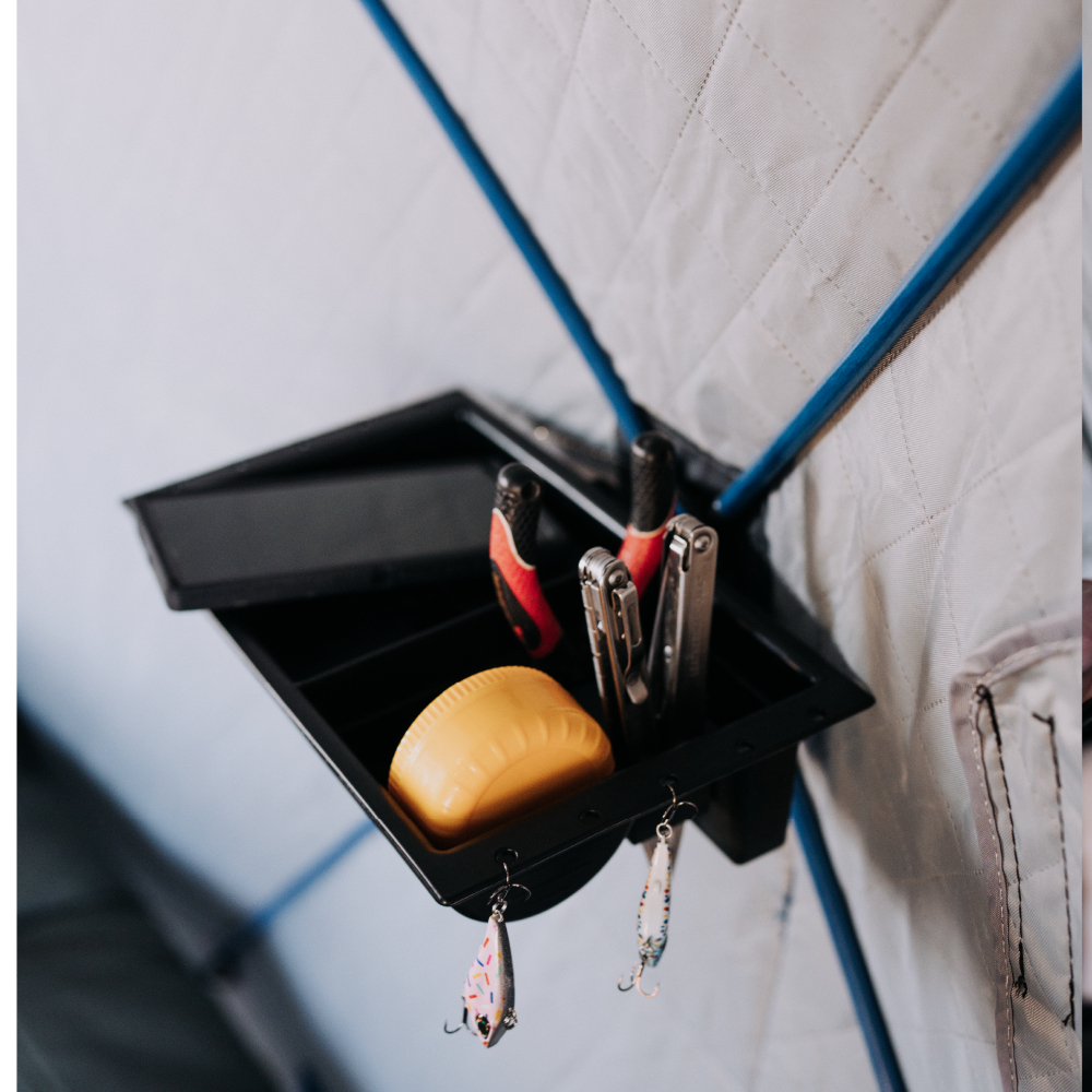 Introducing the Otter Quick Attach Series, a revolutionary line of universal accessories to enhance the ice fishing experience. Features a versatile quick attach system, perfectly compatible with most hub style ice fishing shelters, as well as any vertical wall surface, be it in a wheel house, skid house, or similar structures. Each accessory in this line is thoughtfully designed to be compact, ensuring easy storage and transportation. The on/off installation process is a game-changer, allowing for swift pack-up and storage, saving you valuable time and effort.