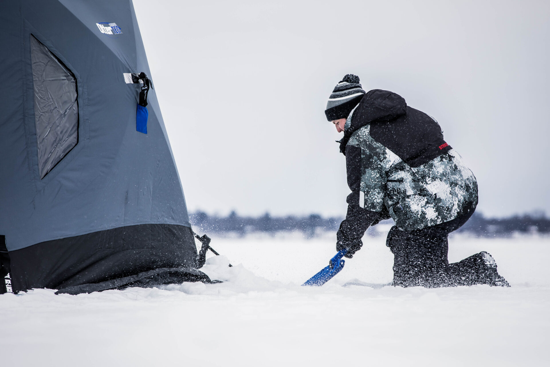 The perfect shovel for the mobile ice fisherman. Ideal for banking portable shelters and clearing slush/snow.